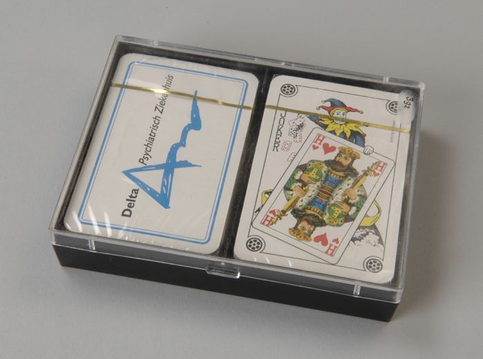 Twee pakjes speelkaarten in doorzichtig plastic doos...