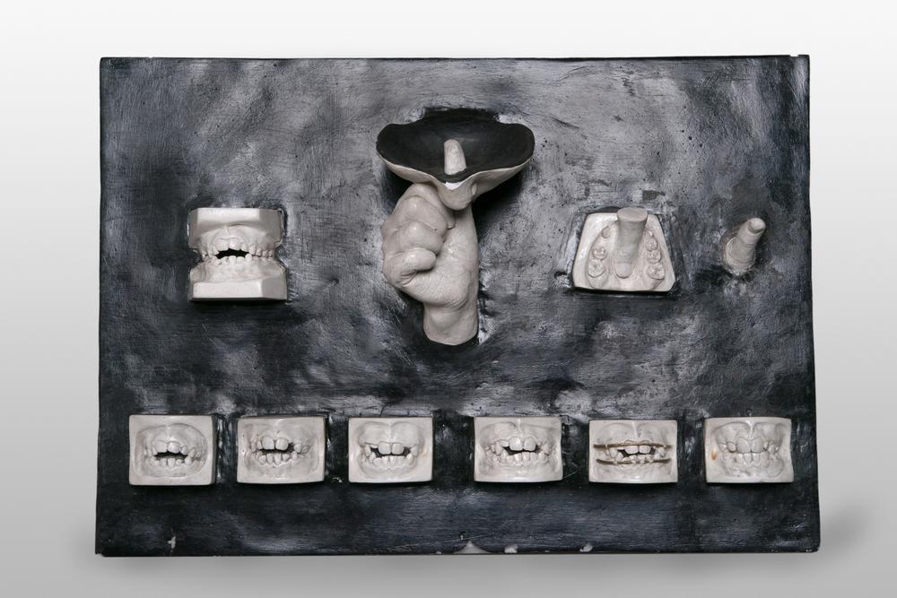 Gipsmodel bovenkaak met getrokken elemeneten met bak...