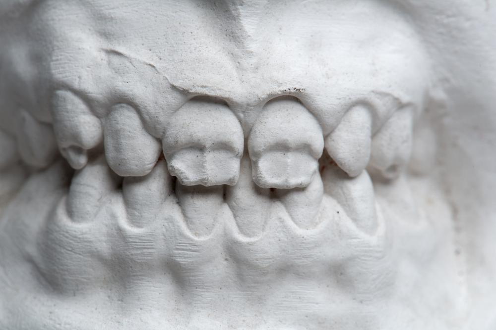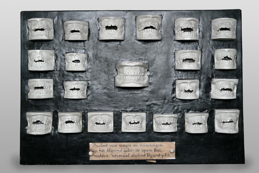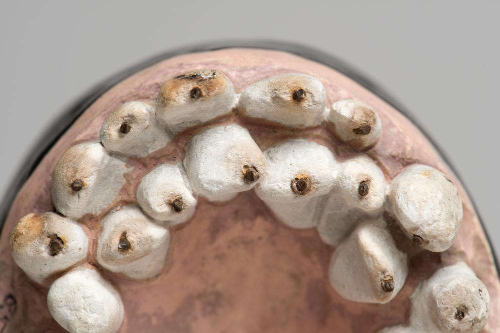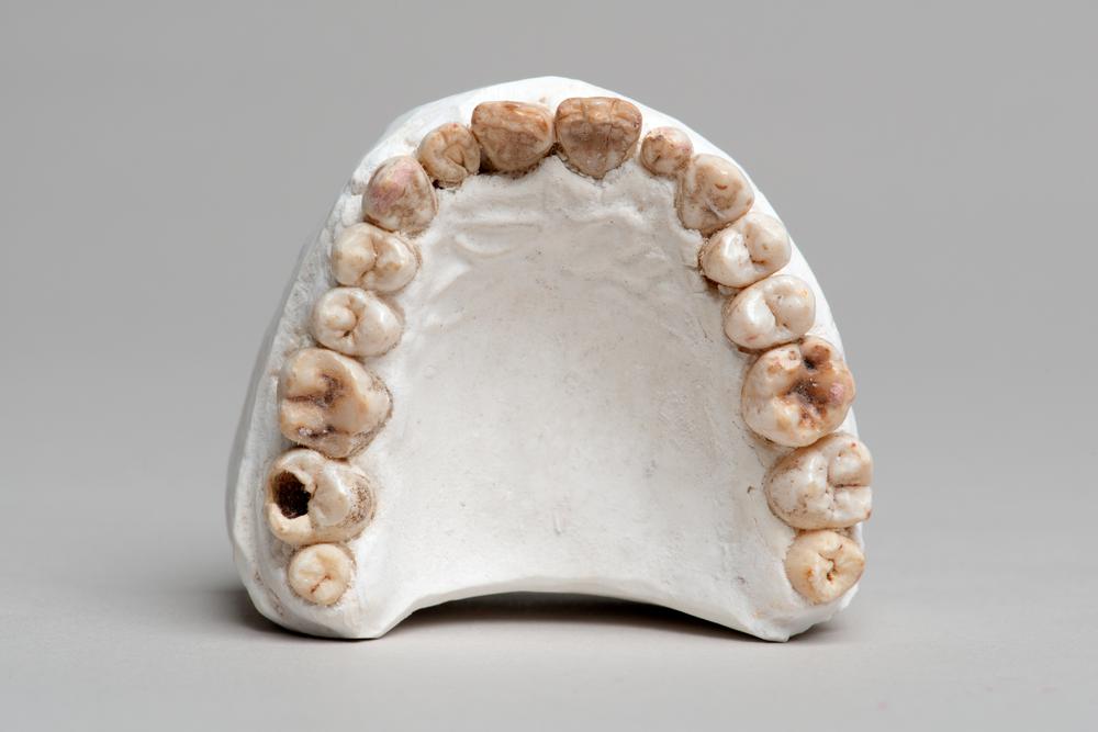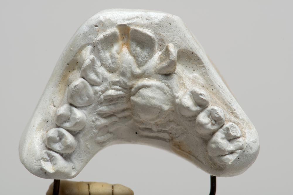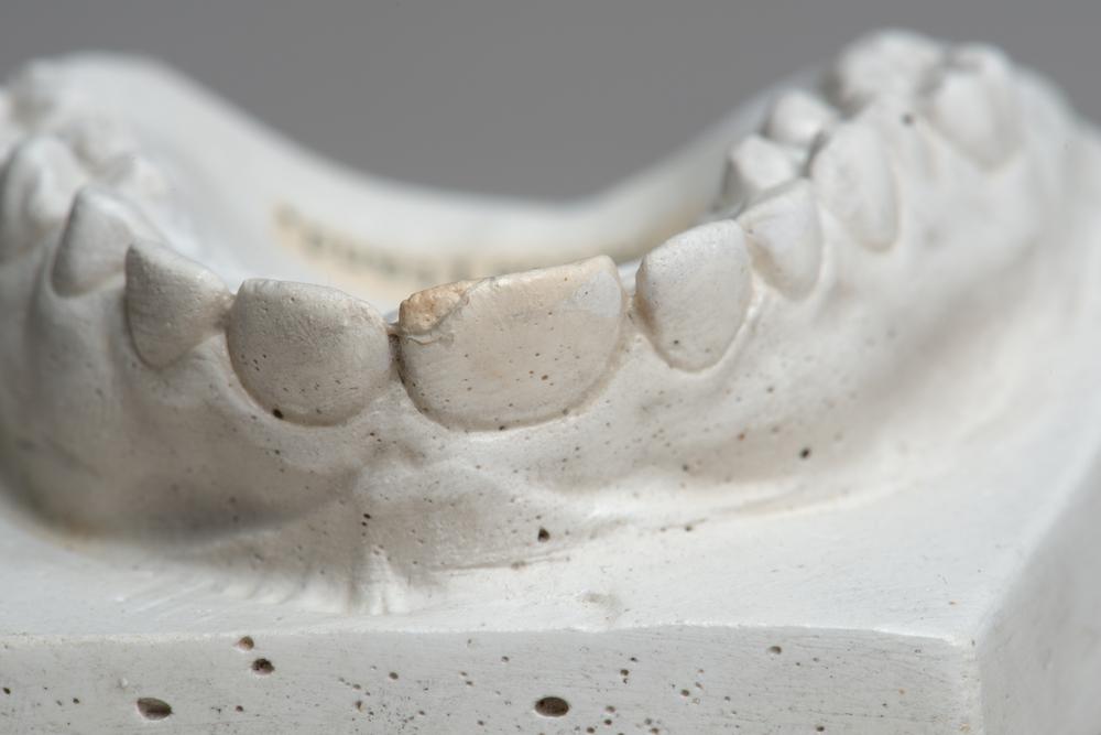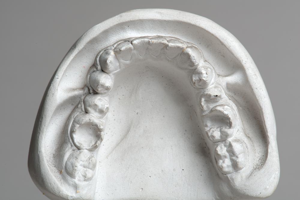 Gipsmodel van een bovenkaak met geextraheerde elemen...