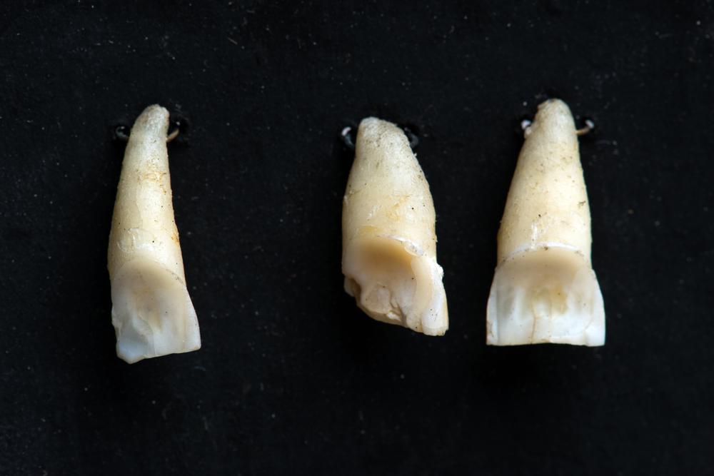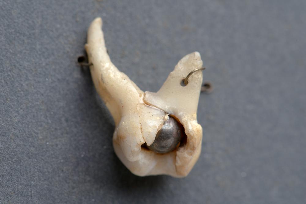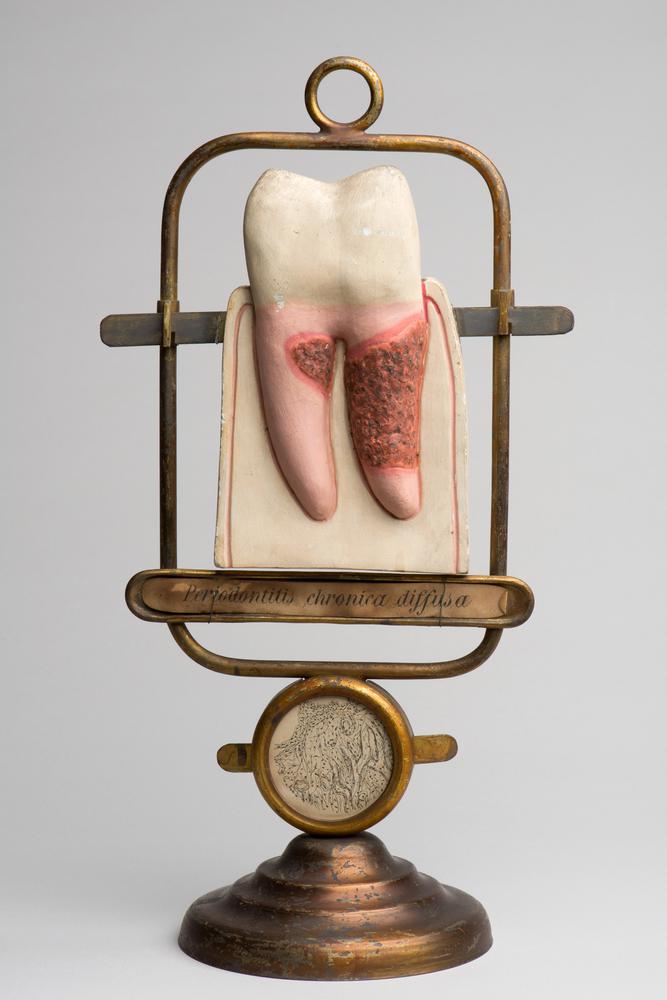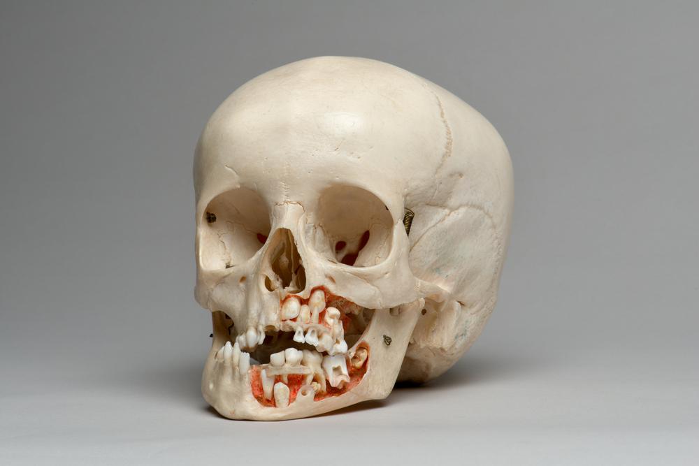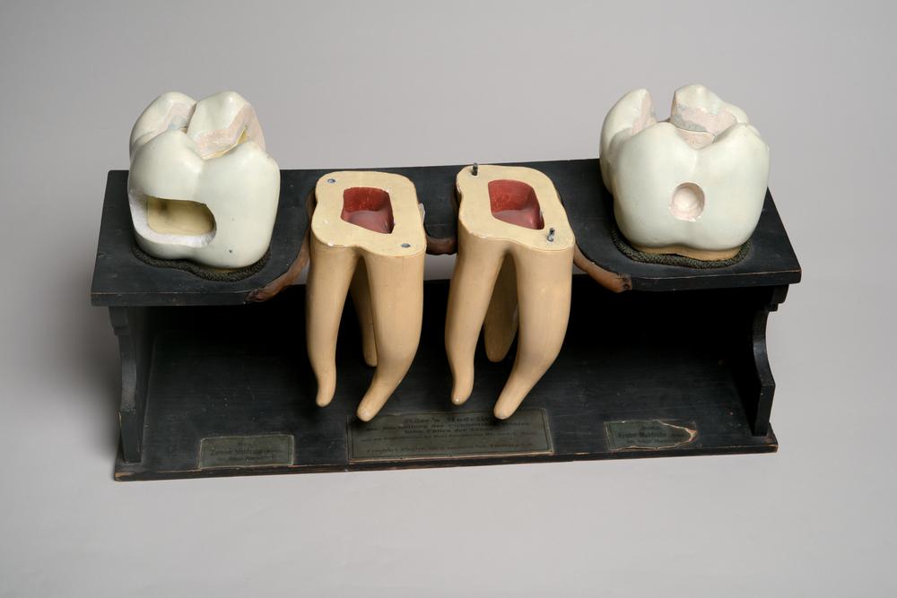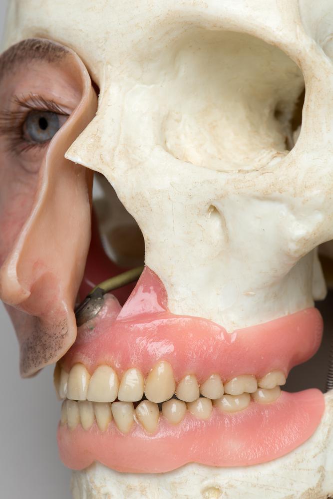 Gipsmodel van een onderkaak met getrokken tanden en ...