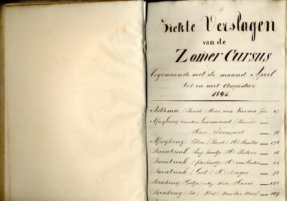 Ziekteverslagen van 's Rijks Veeartsenijschool 1845