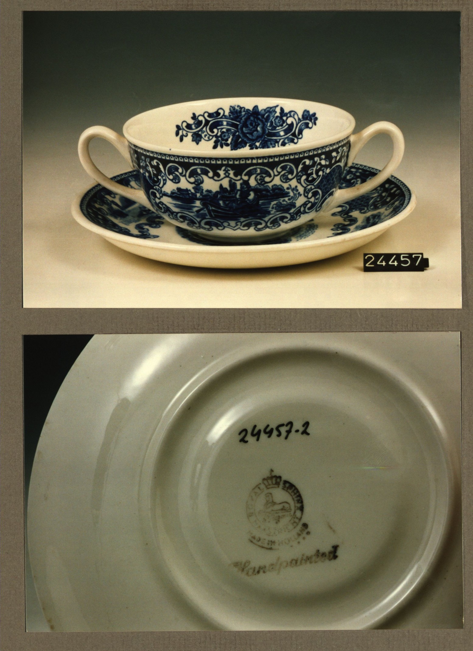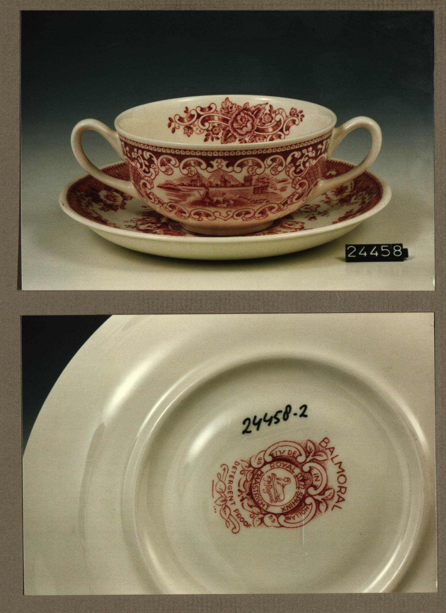 Soepkom met schotel, model Bergen met decor Old England