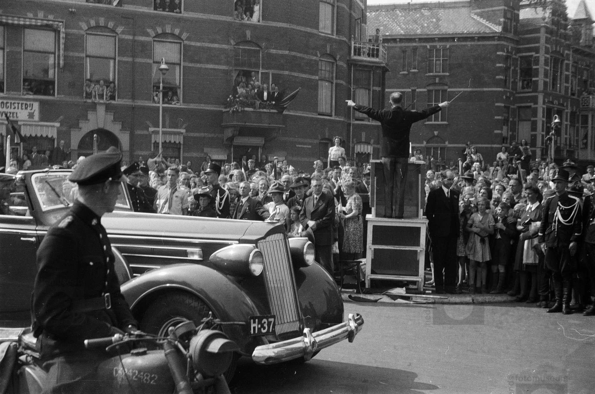 Intocht van koningin Wilhelmina en haar gevolg in De...