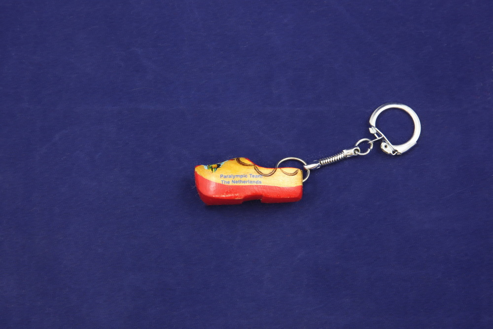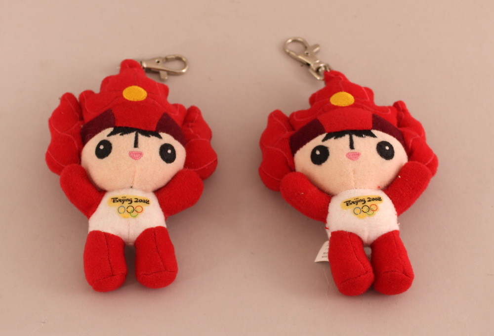 Twee identieke sleutelhangers met mascotte in de vor...