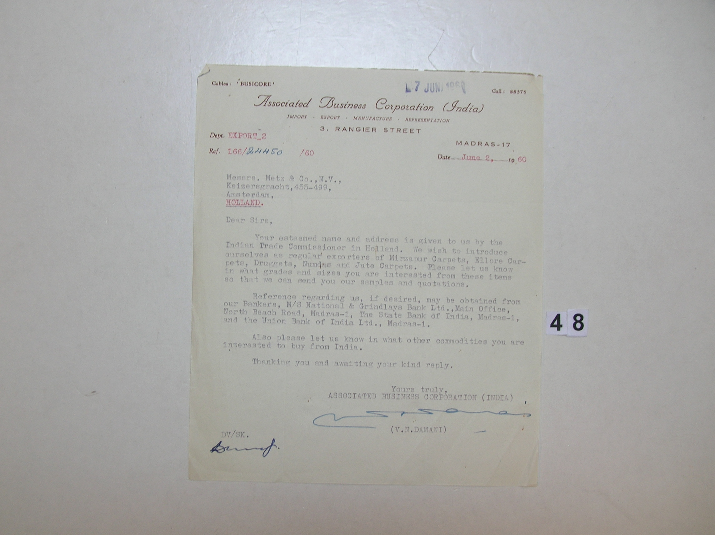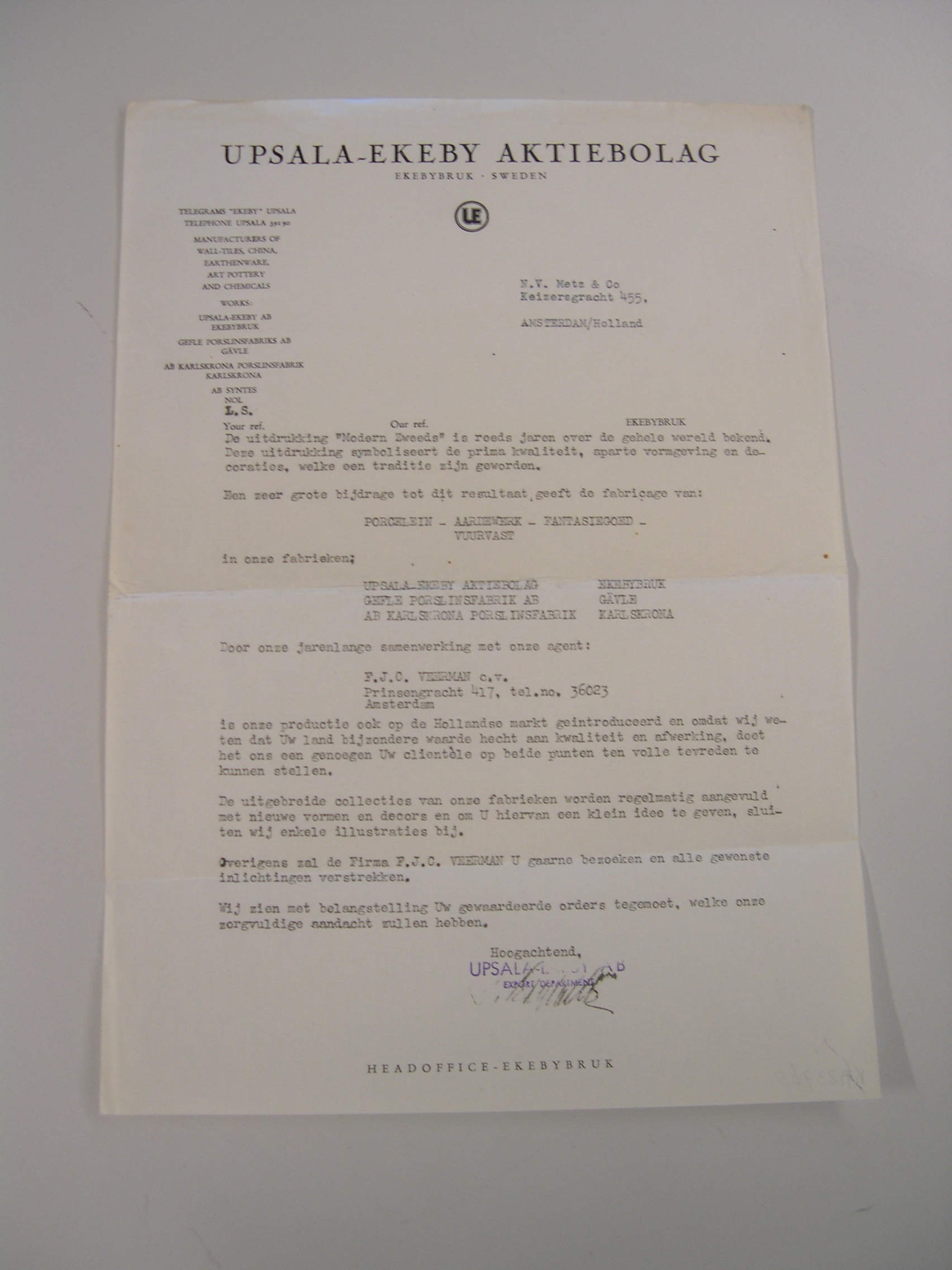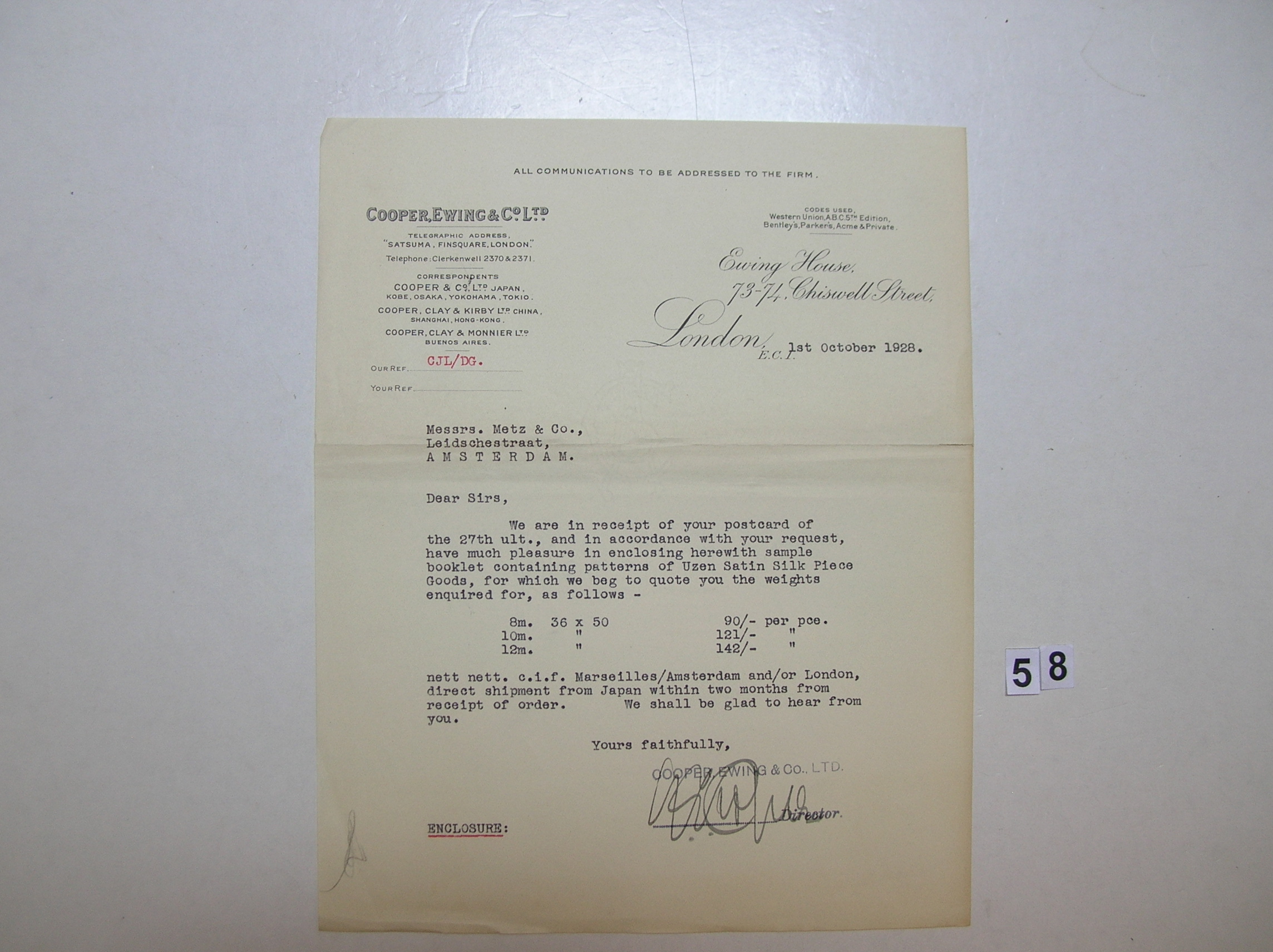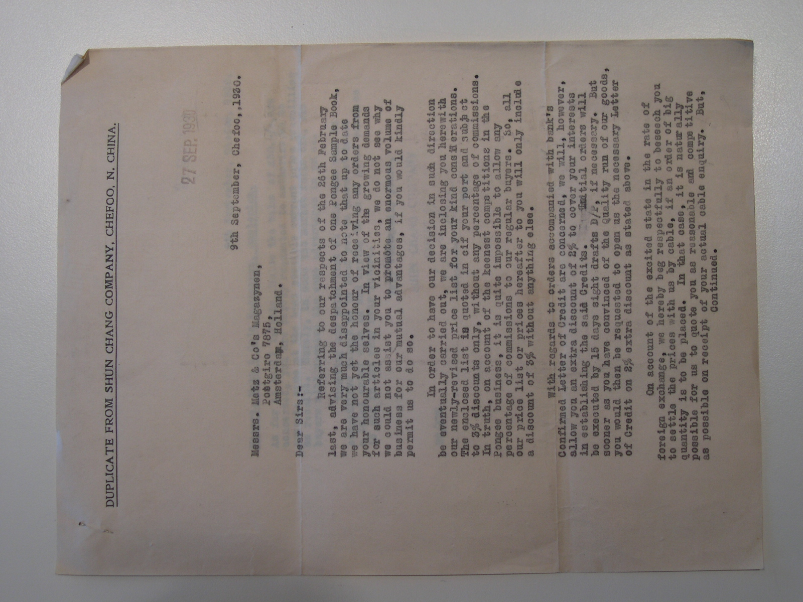 Briefwisseling Shun Chang Company met Metz & Co Maga...