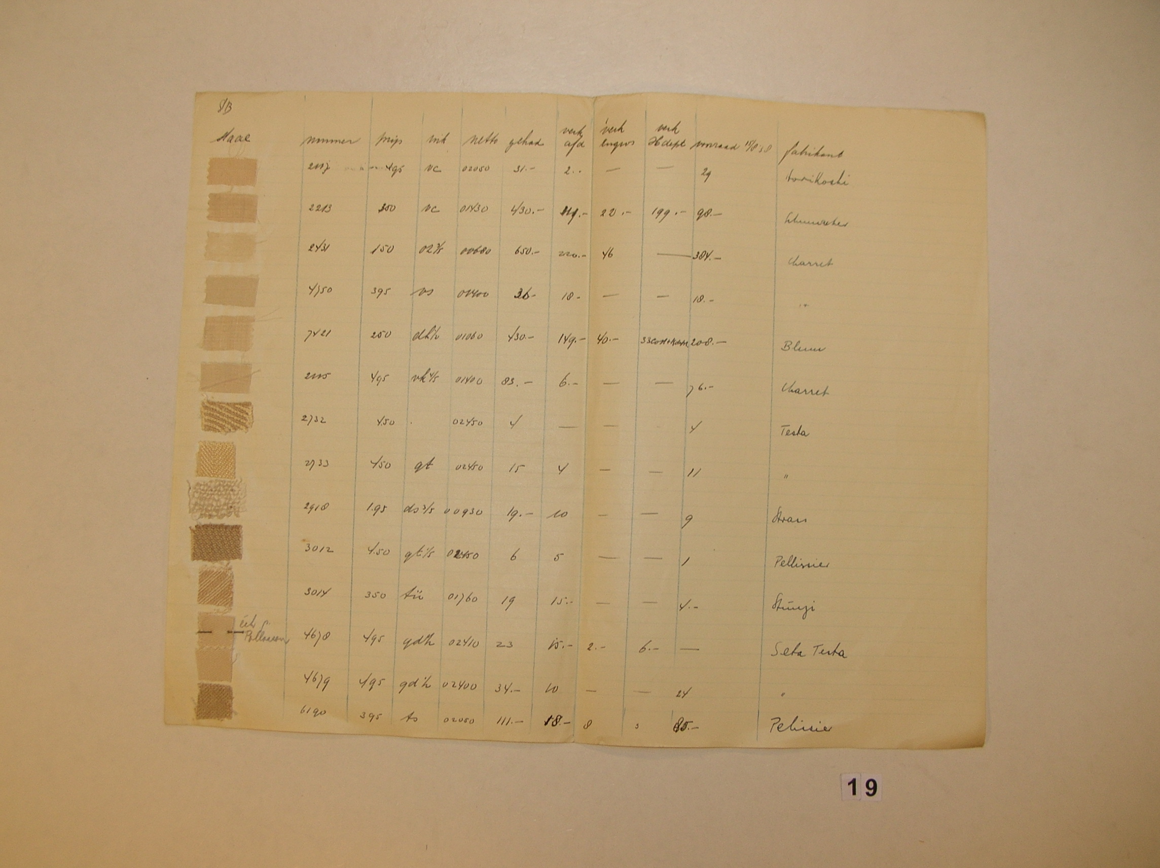 Brief bij stalenboek