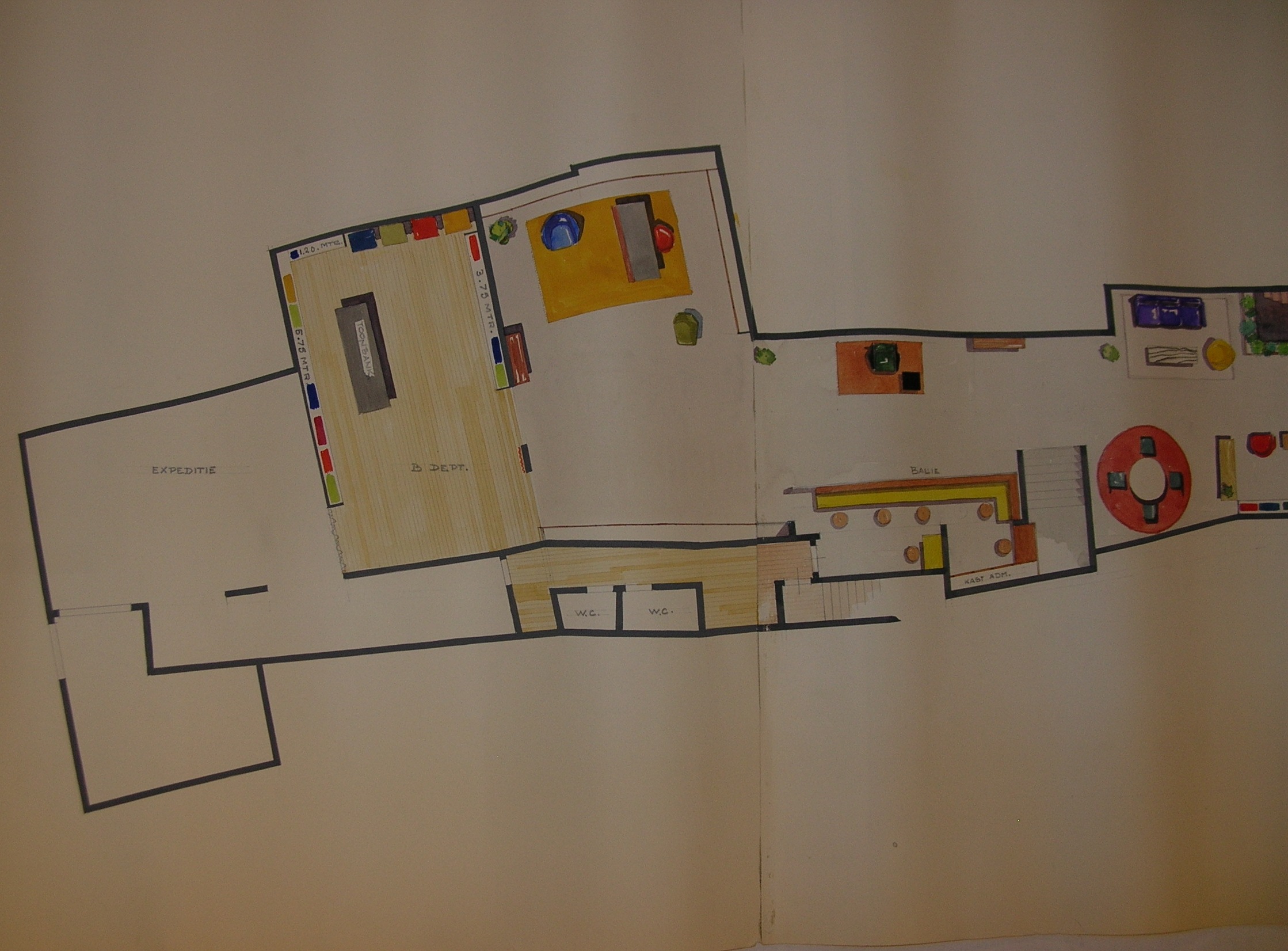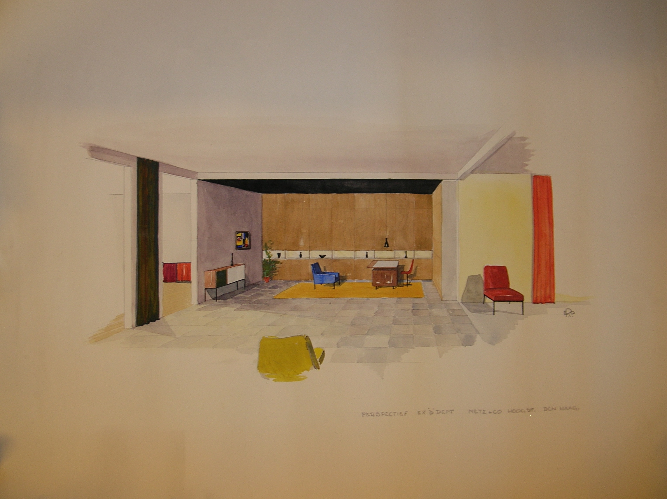 Schetsontwerp voor winkelinrichting Metz & Co, Den Haag