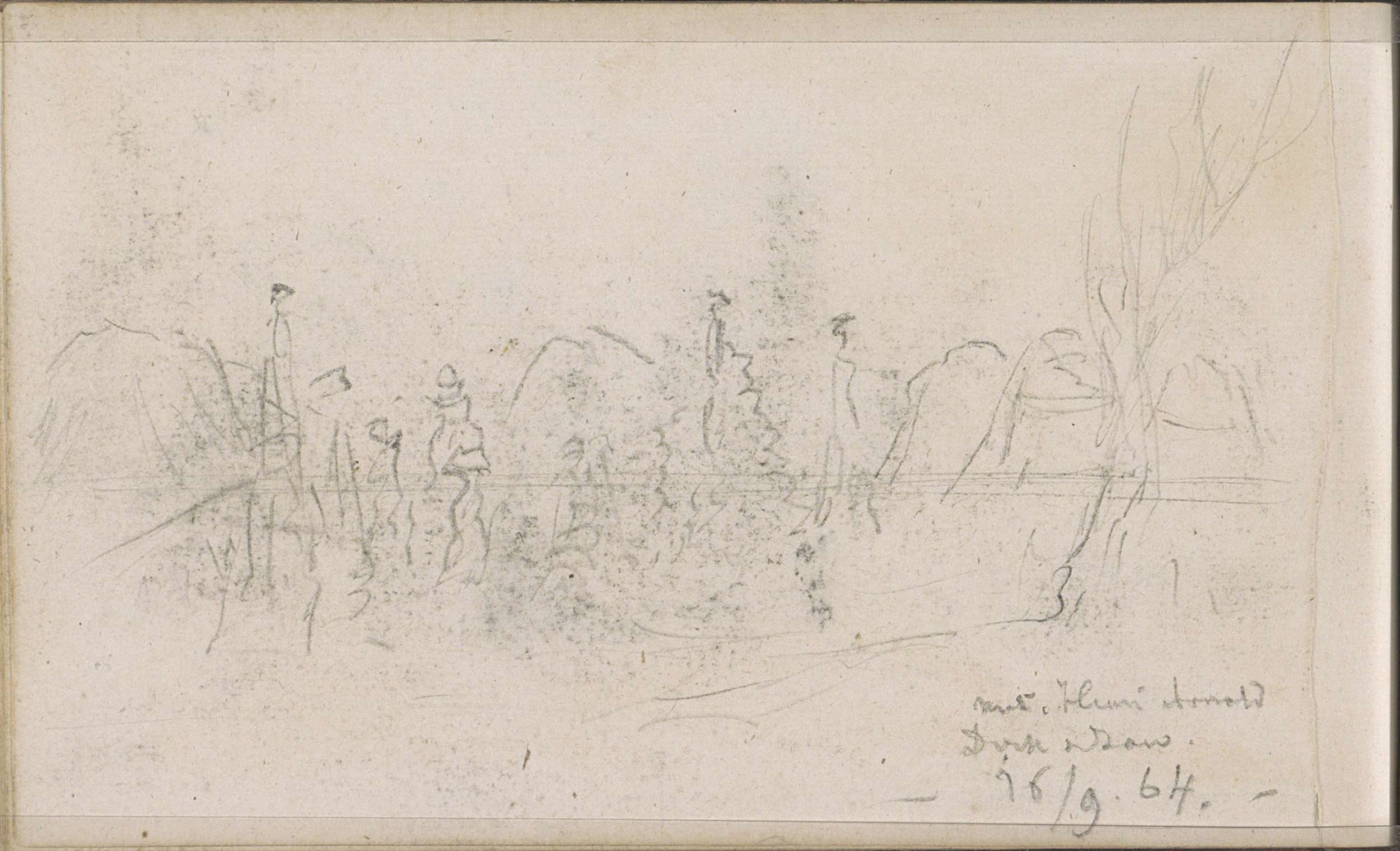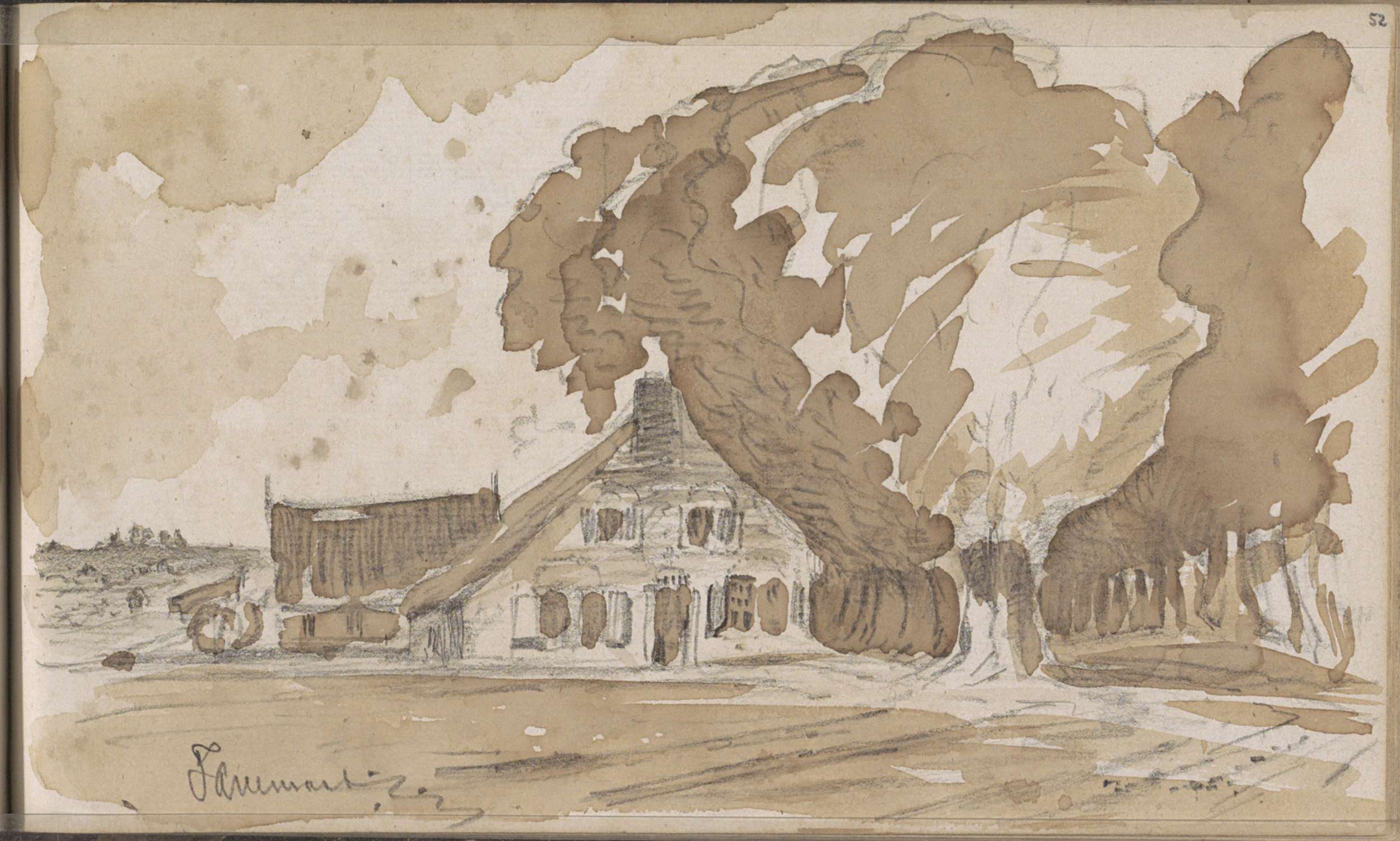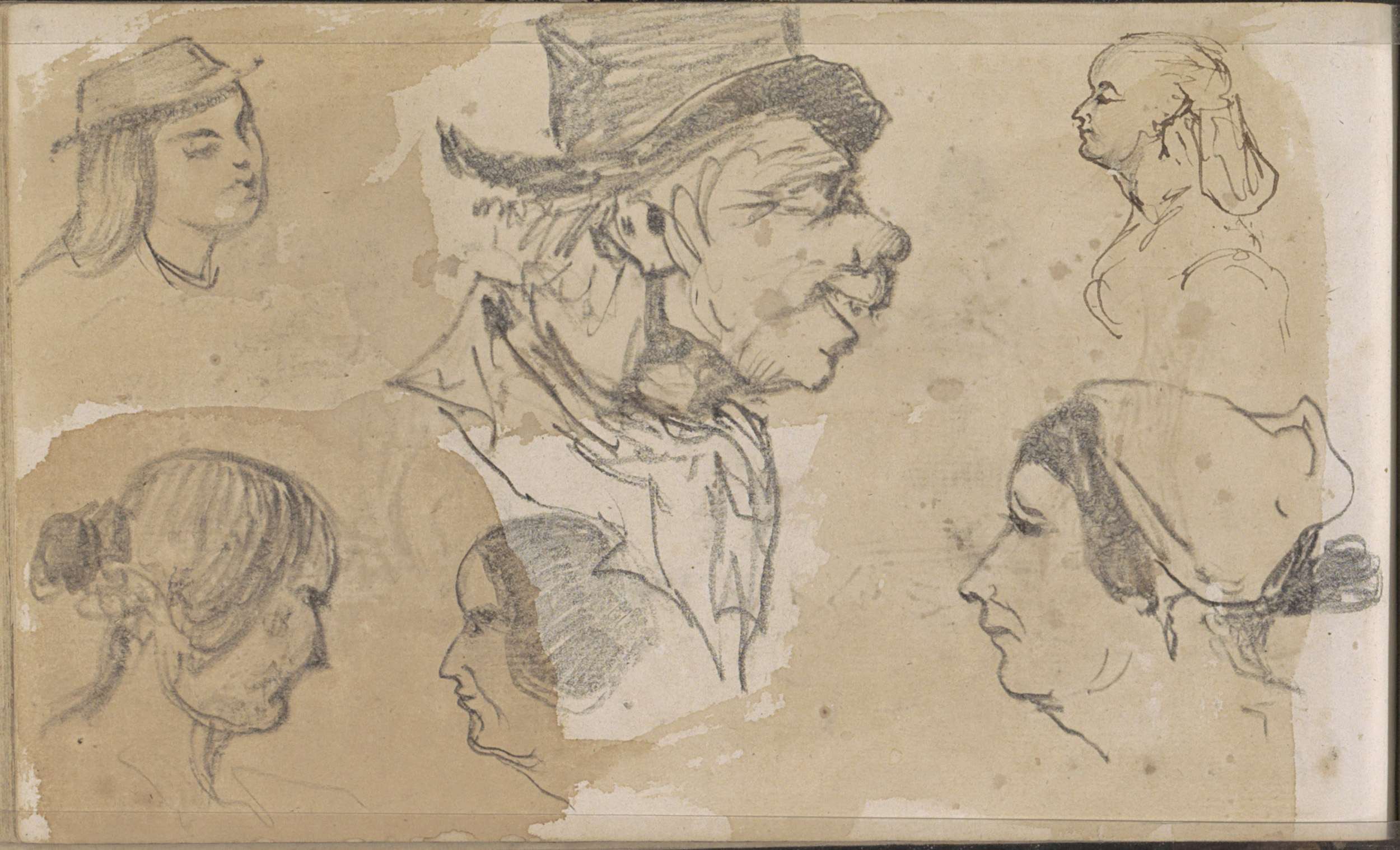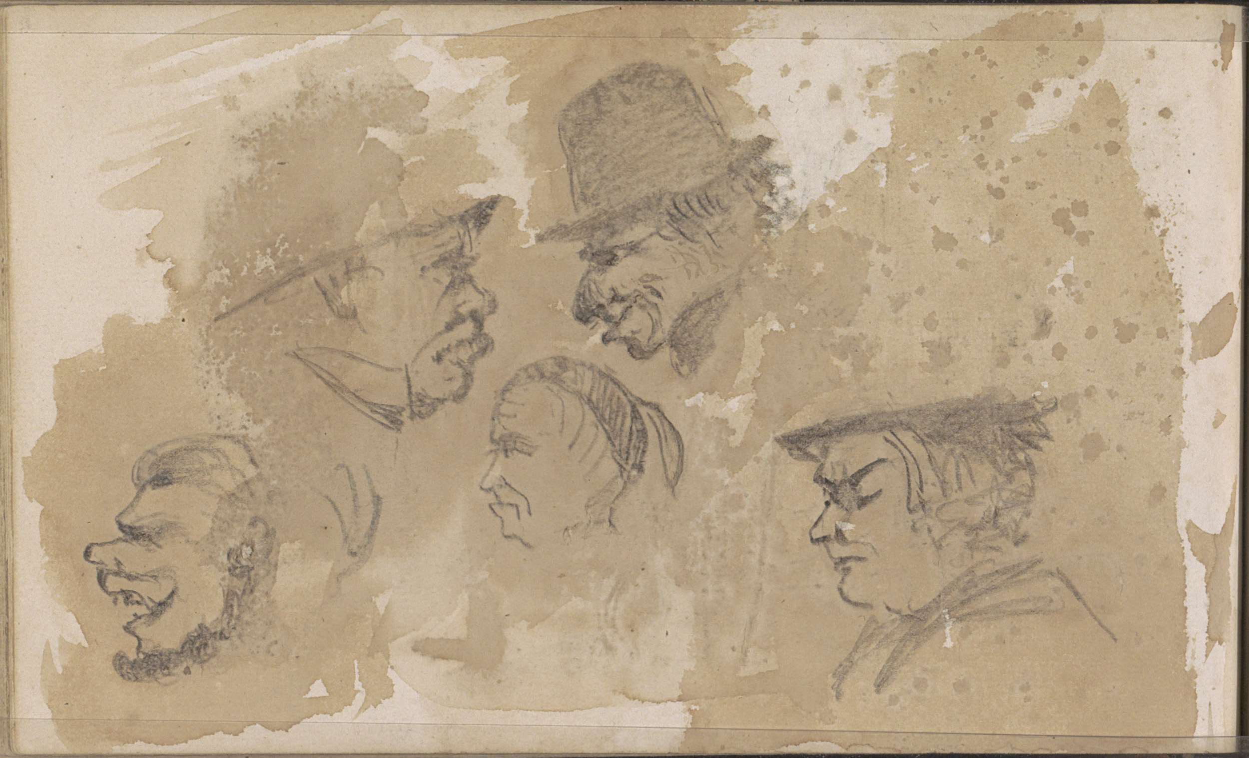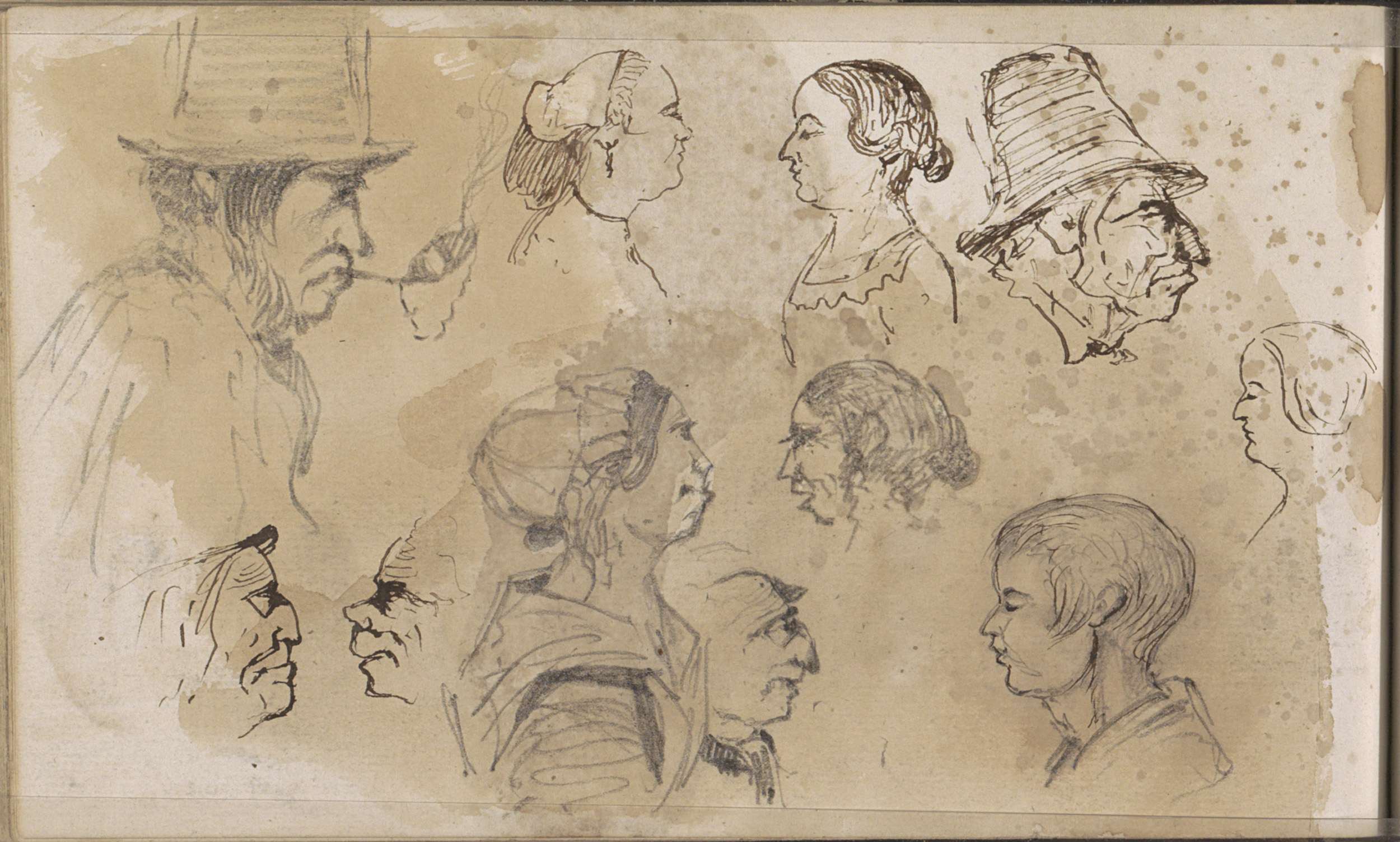Studieblad, onder andere met een kop van een pijprok...