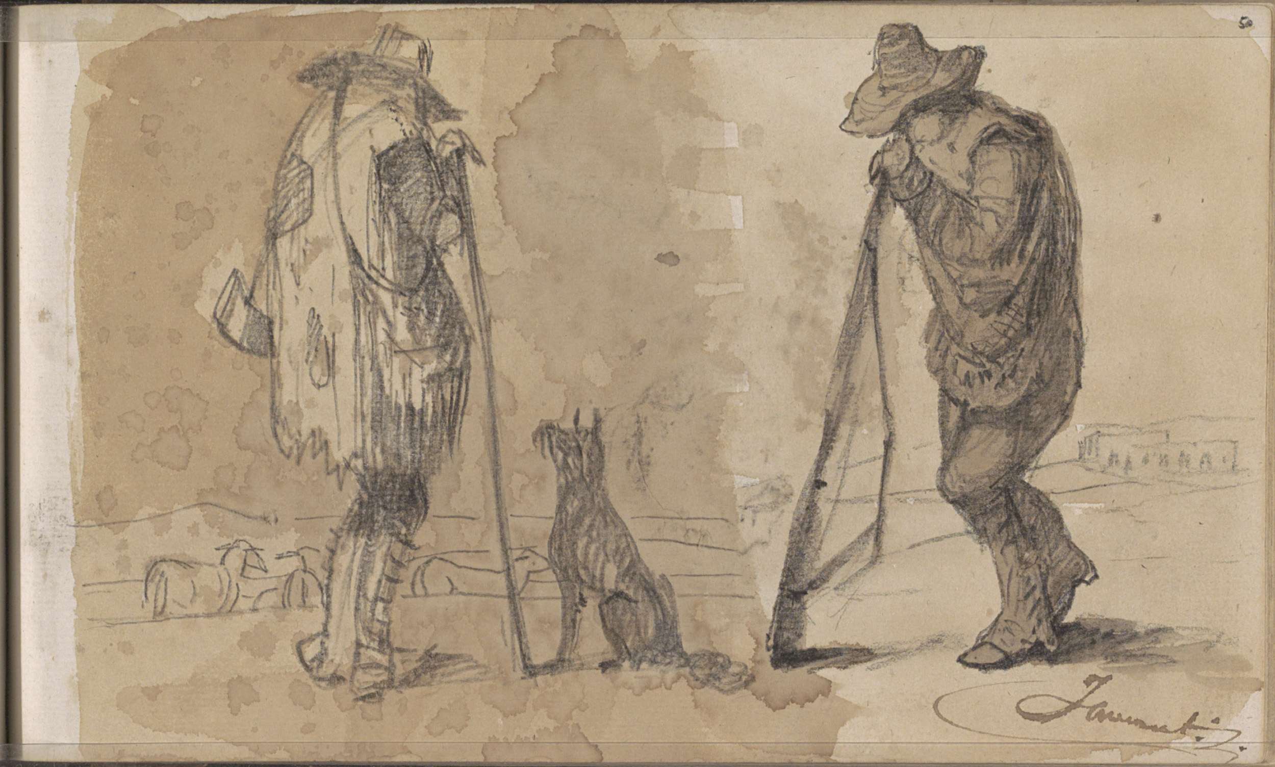 Twee jagers in een weiland