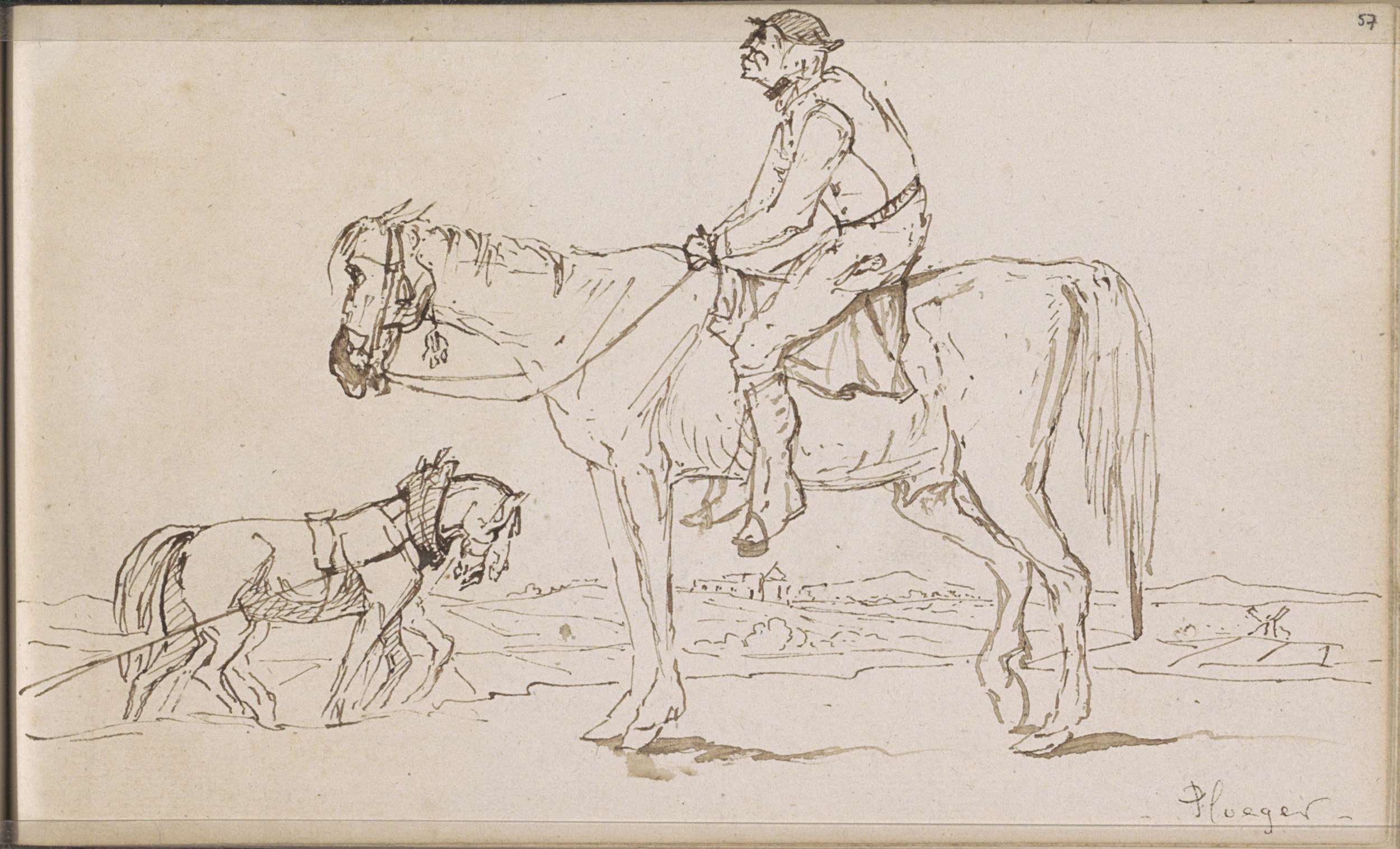 Weiland met ploegende paarden
