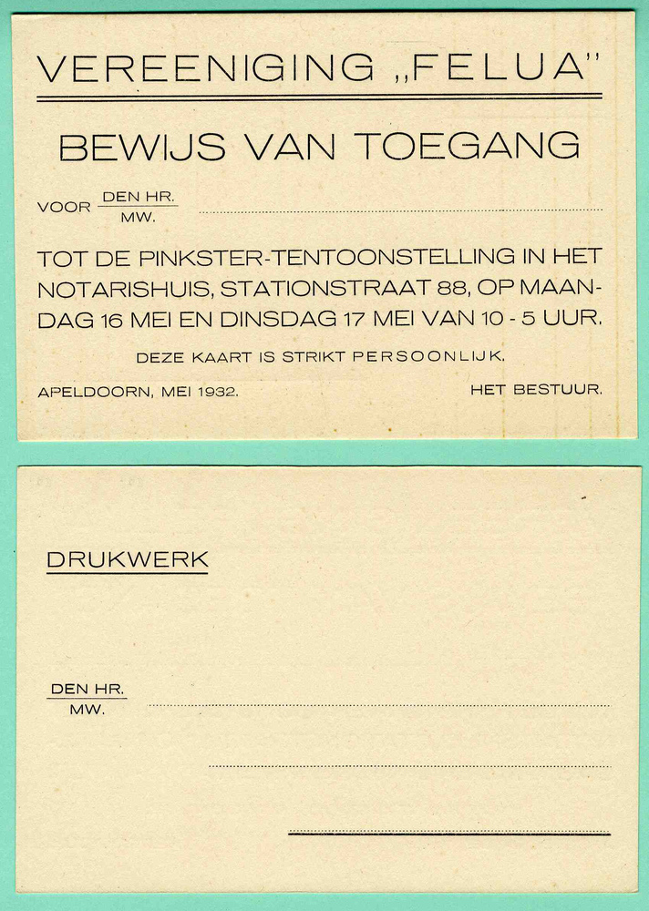 Vereeniging Felua : bewijs van toegang