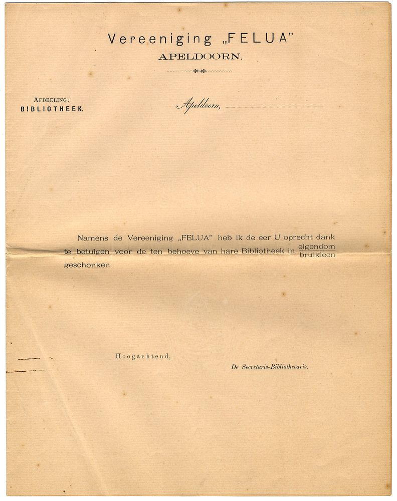 Vereeniging Felua Apeldoorn : afdeeling bibliotheek
