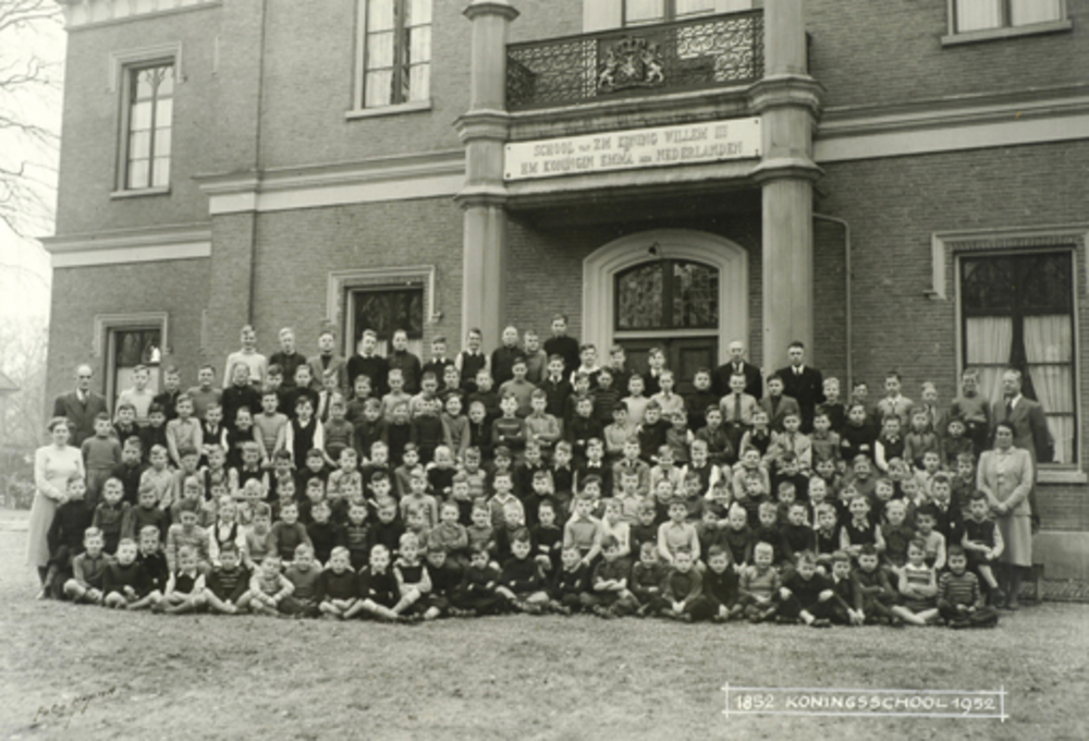 Groepsfoto van de school van Willem III en Emma in 1...