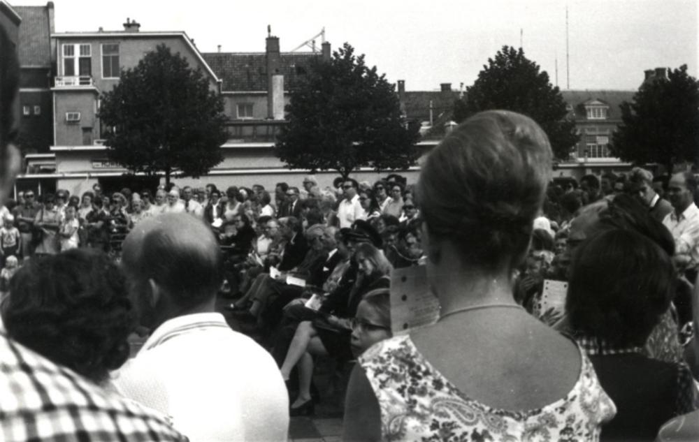 Burgemeester Roosmale Nepveu op het terras van het r...