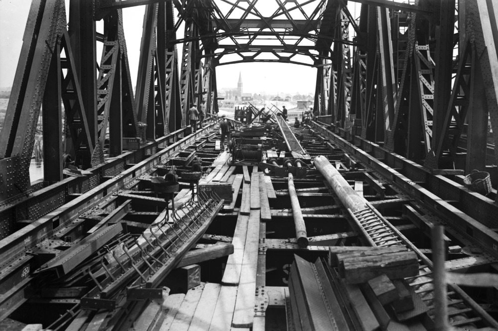Maasbrug in aanbouw in 1928, een gigantische klus bi...