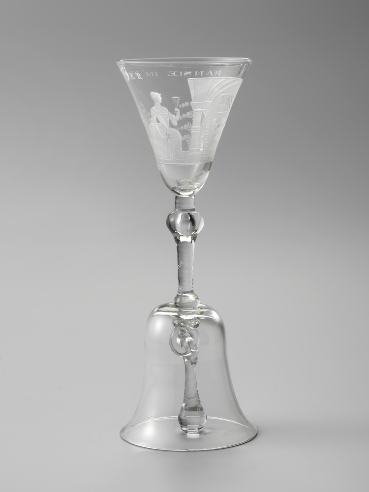 Dubbel kelkglas ‘HANSIE IN DE KELDER’.