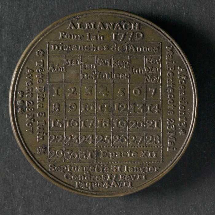 Penning die de almanak voor het jaar 1779 aangeeft