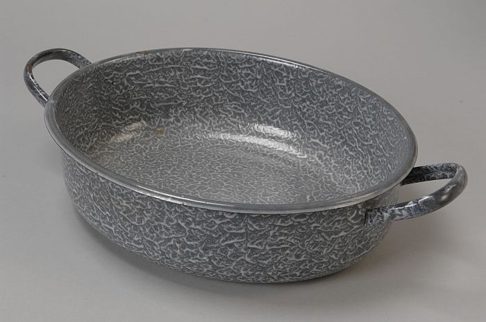 Grijs gewolkte afwasteil met twee handgrepen, ovaal