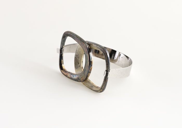 Moderne armband met twee ineen grijpende zilveren ri...