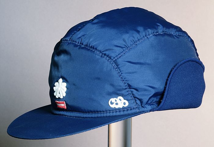 Donkerblauwe skipet met klep, "Capo", met borduursel...