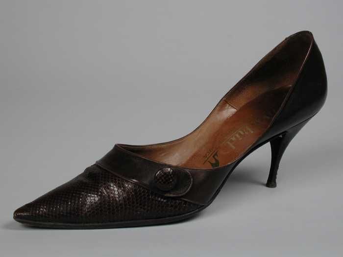 Bruine reptielenleren pumps met zeer spitse neus en ...