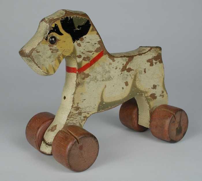 Houten hond op wielen