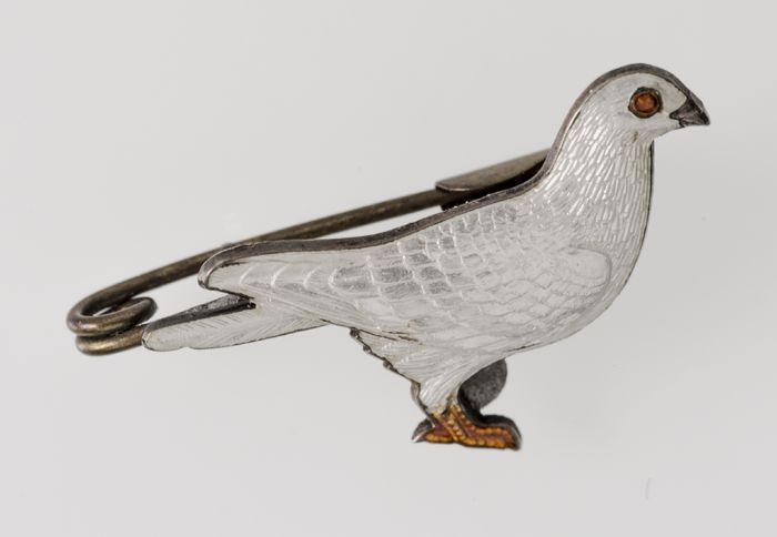 Speld van geëmailleerde zittende vredesduif