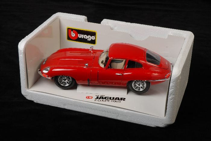 Schaalmodel 1:18 van rode sportauto, "Jaguar "E" Cou...