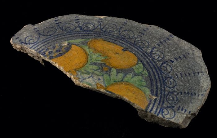 Bodemfragment majolica schotel met polychrome fruits...