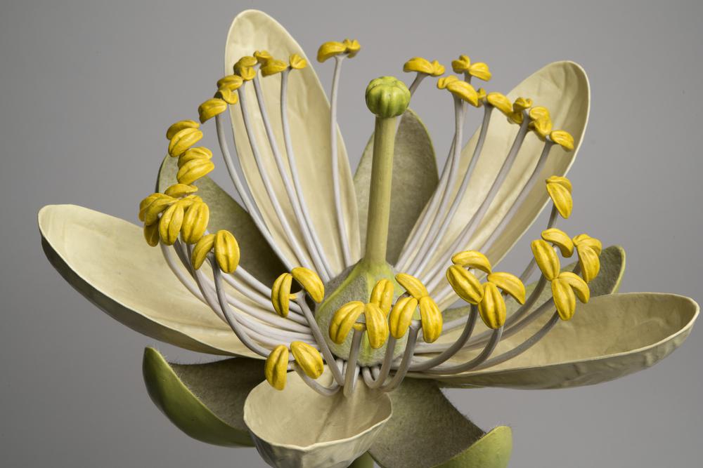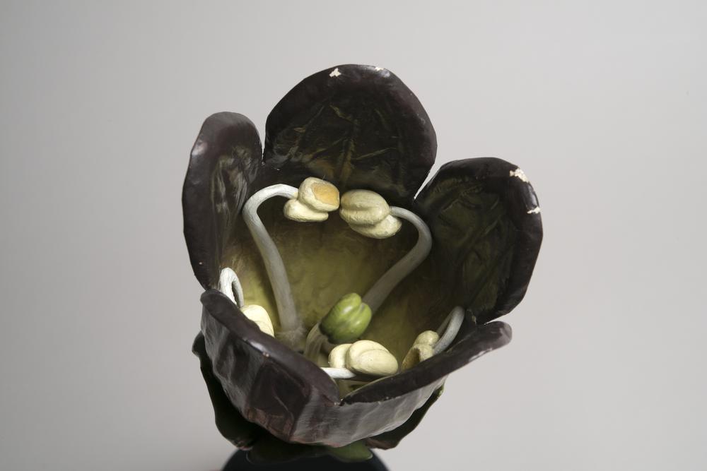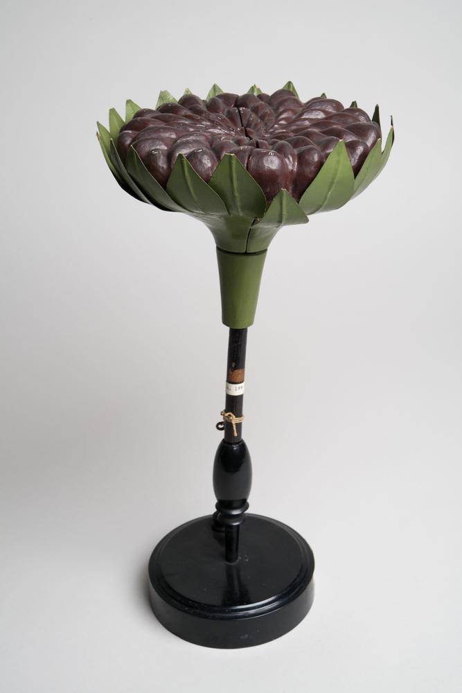 Papier-machémodel van een bloemhoofdje op een vlakke...