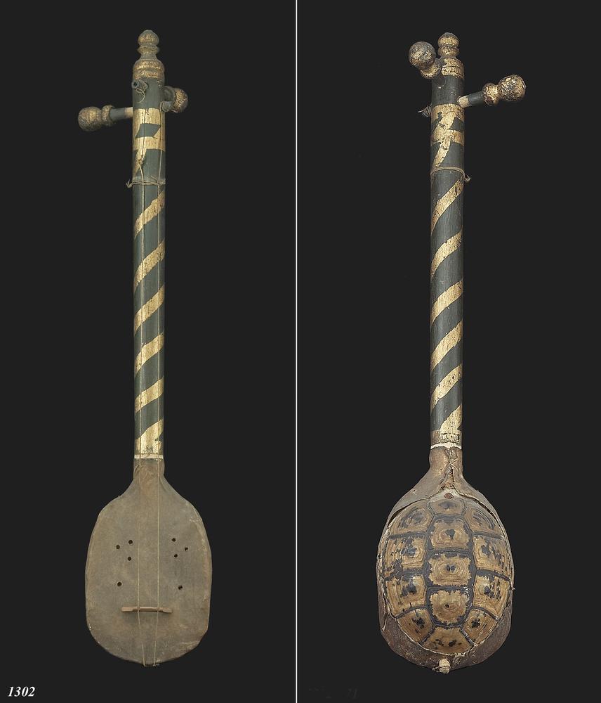 Snaarinstrument met schildpadschild en dierenvel