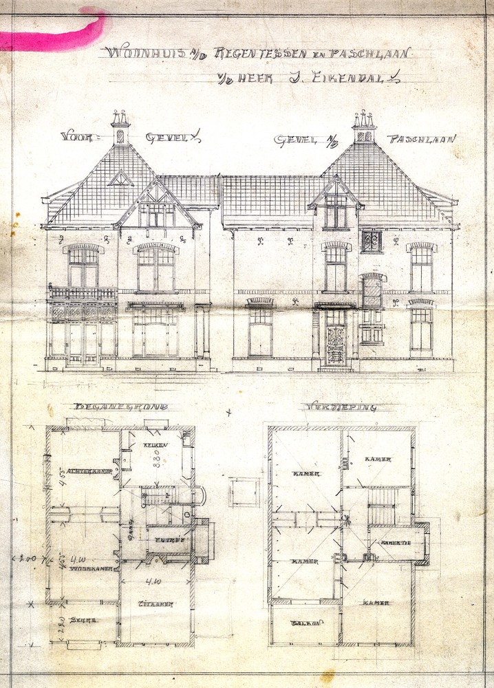bouwtekening voor een woonhuis aan de Regentessen- e...
