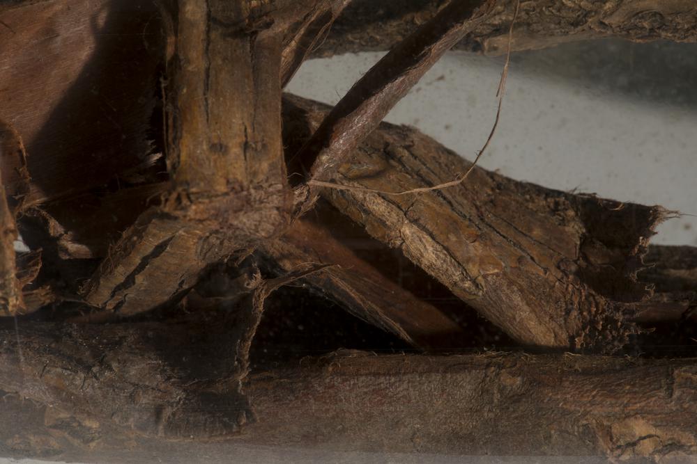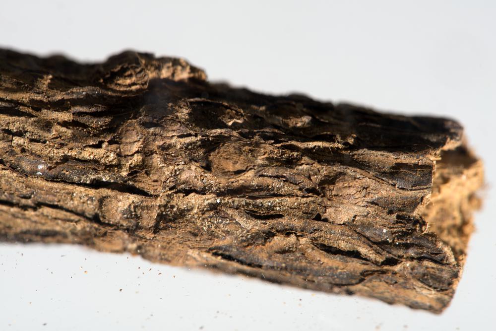 Droogprparaat van stukjes schors van de vuilboom