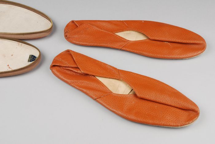 Cognackleurige kunstleren herenpantoffels in reisetu...