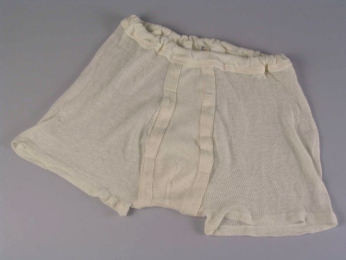 Herenonderbroek van wit dralon in netstructuur, met ...