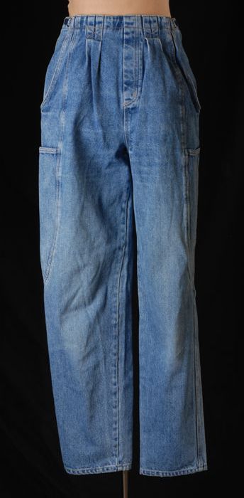 Blauwe denim positiebroek met verstelbare klepsluiting