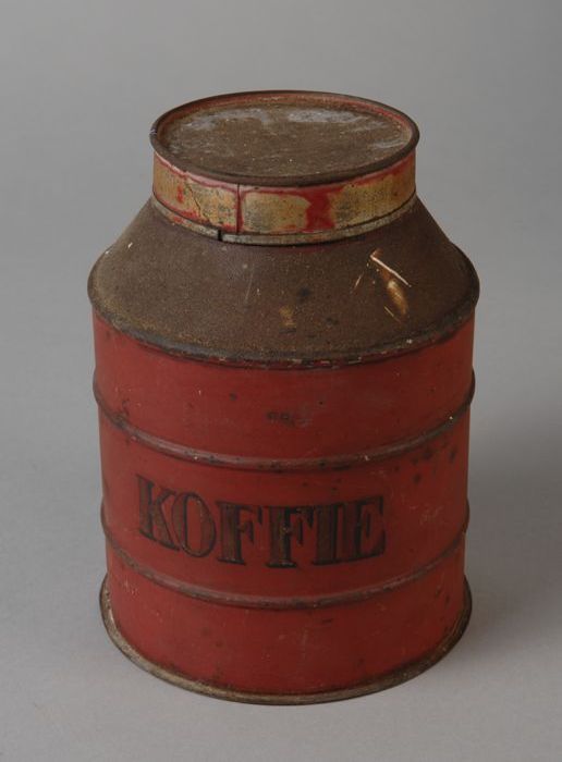 Rood rond blik met opschrift "KOFFIE"