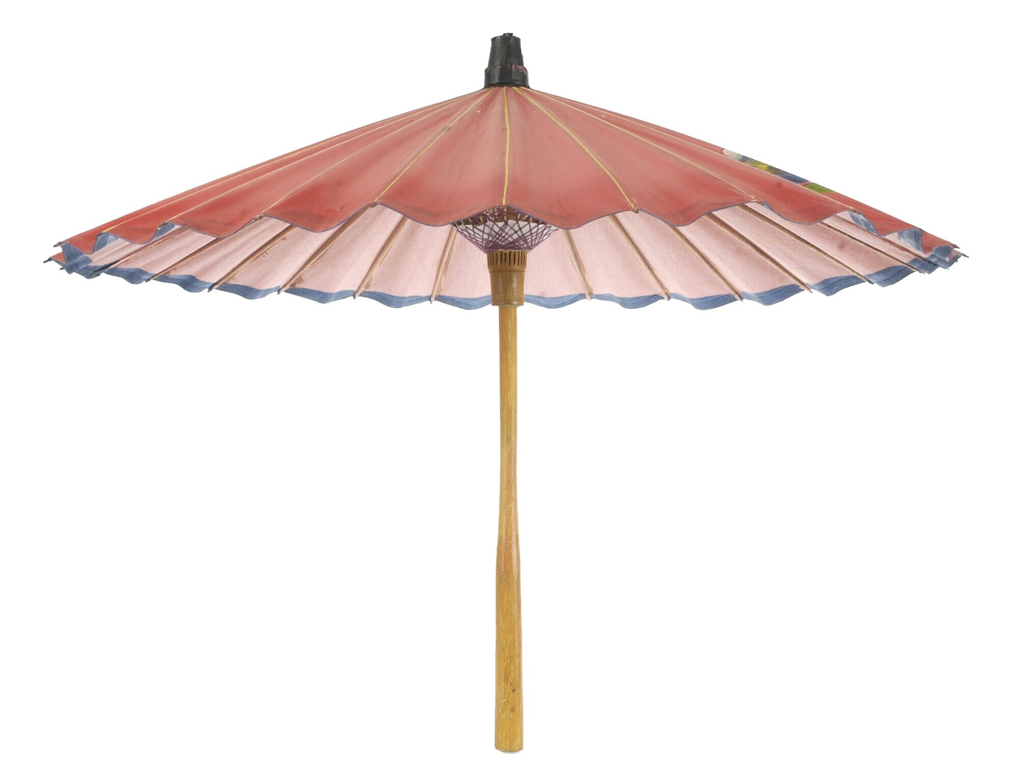 Pajong met rood katoenen scherm, versierd met voorst...