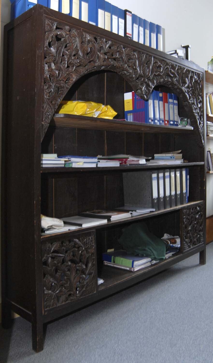 Boekenkast versierd met zonnescherm delen