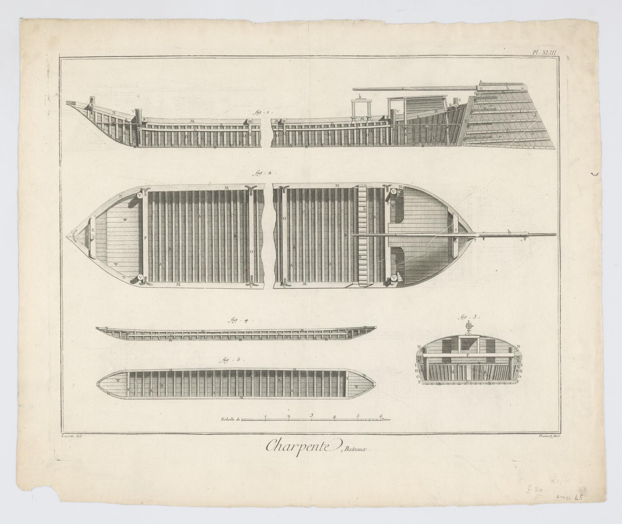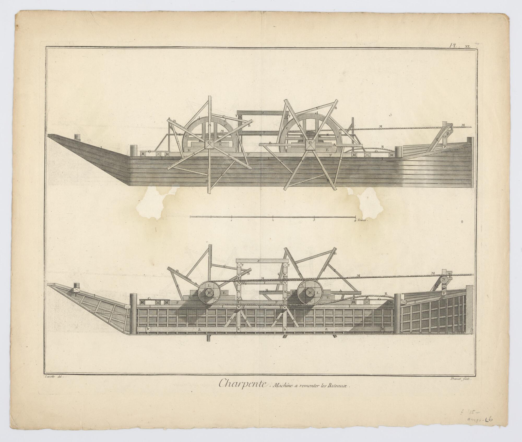 Constructietekeningen van een Frans schipbrug