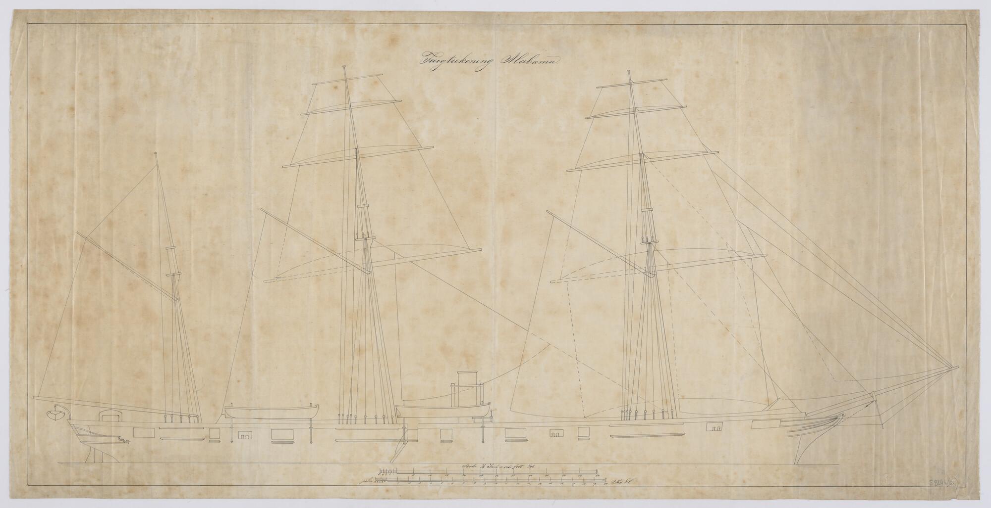Tuigtekening van het schroefstoomschip 'Alabama', 1862.
