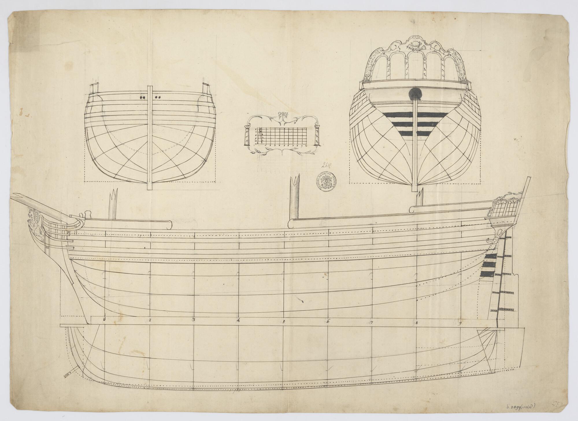 Algemeen plan en lijnenplan van een fregat