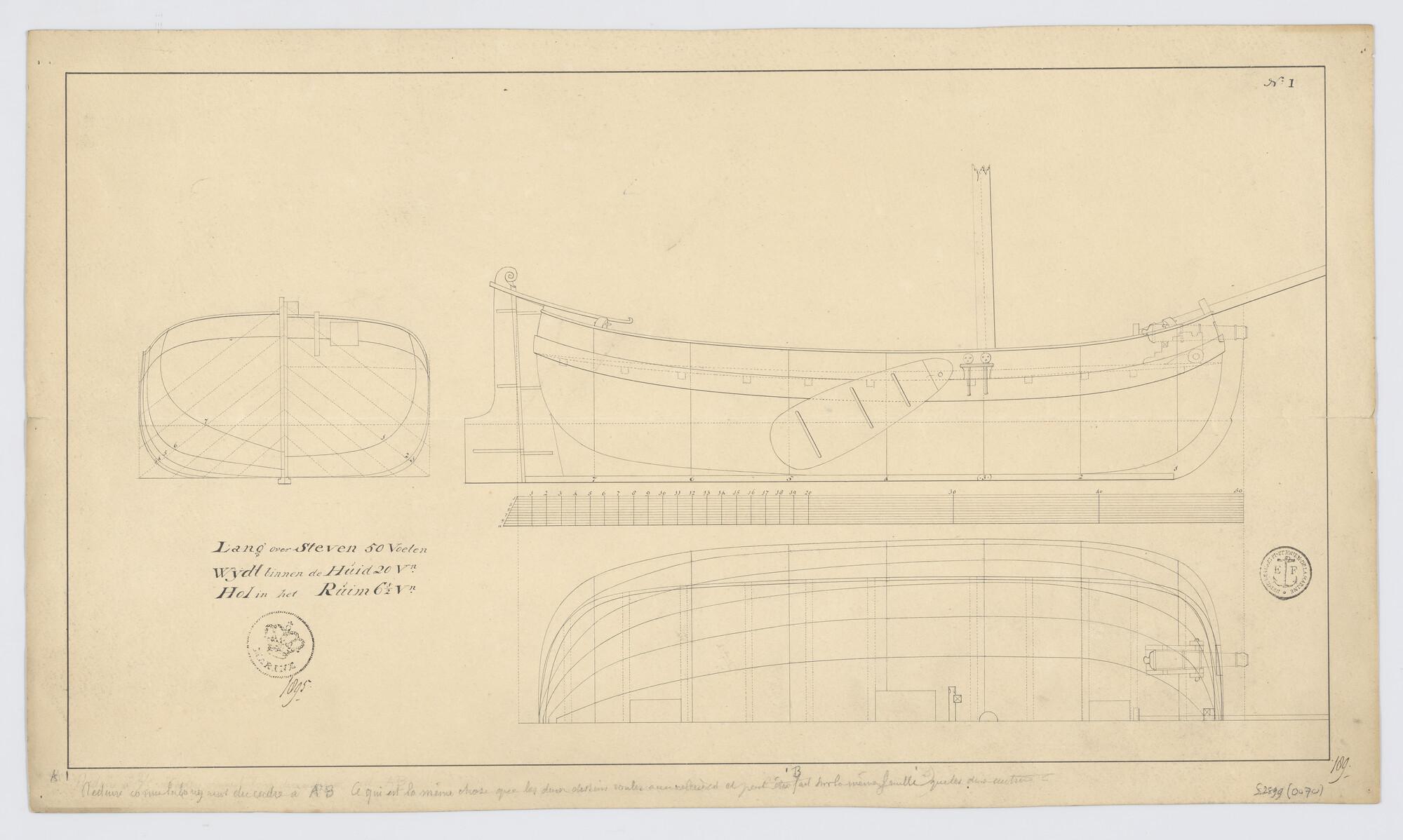 Constructietekening van de drijvers van een Franse k...