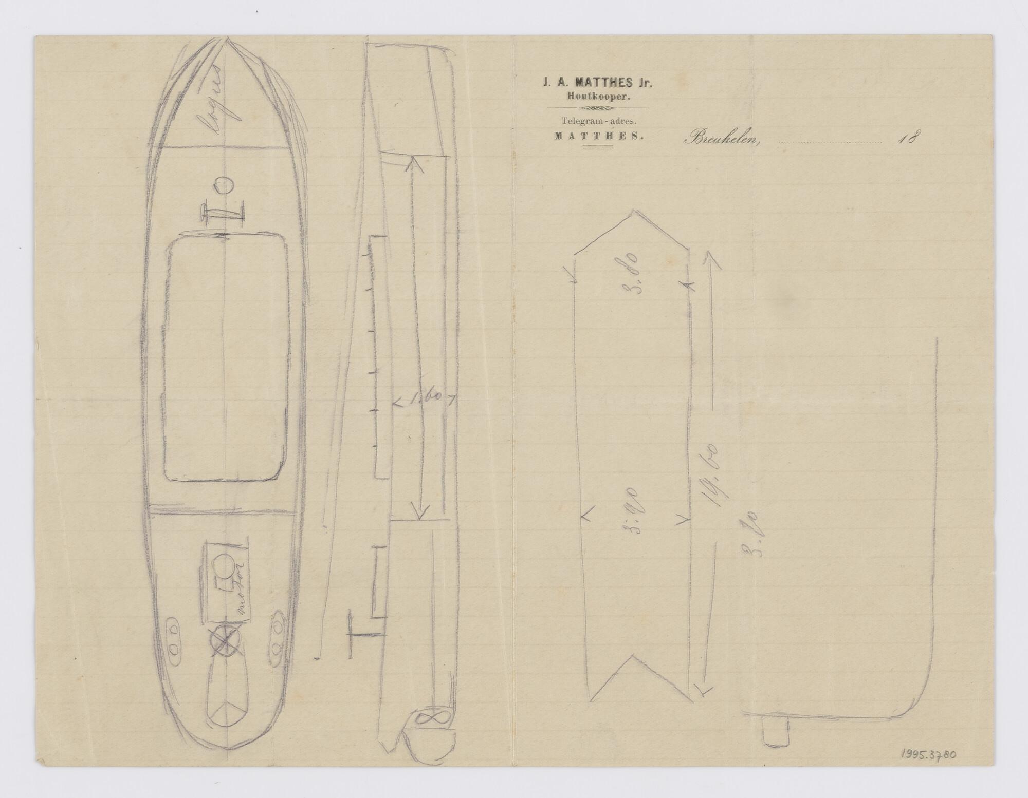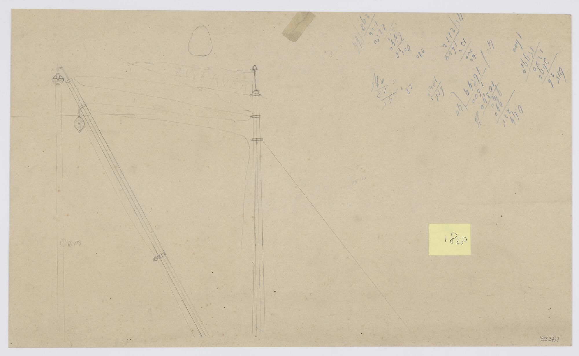 Schets masttop voor een vrachtschip met petroleummotor