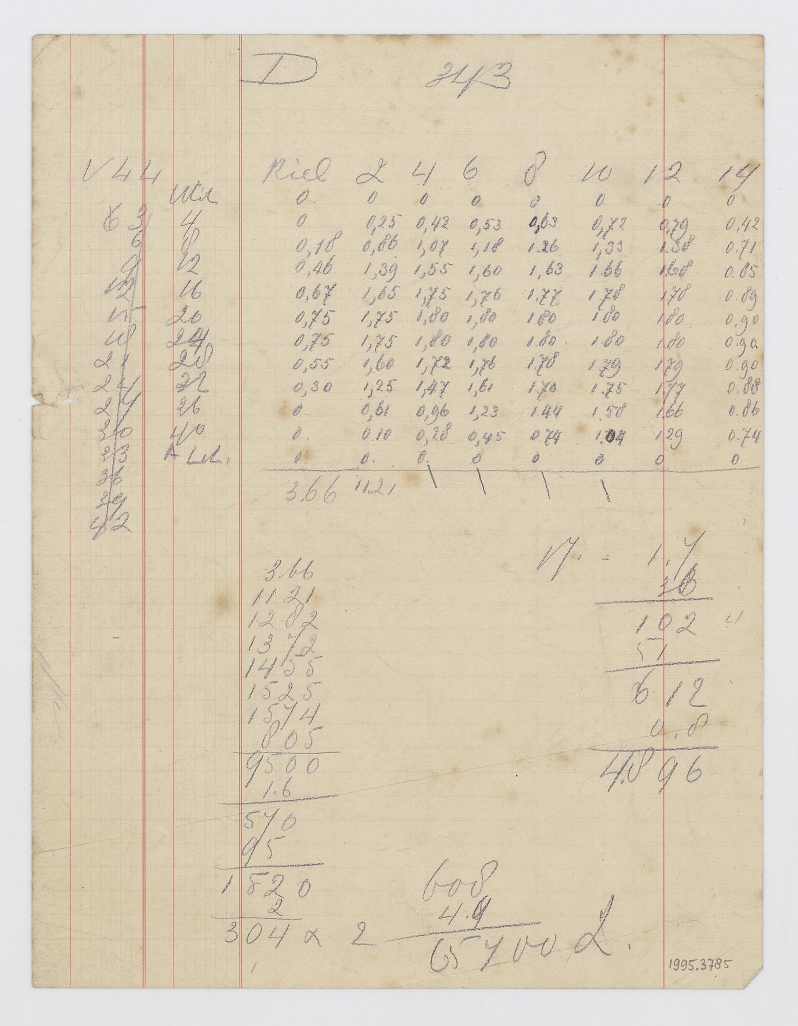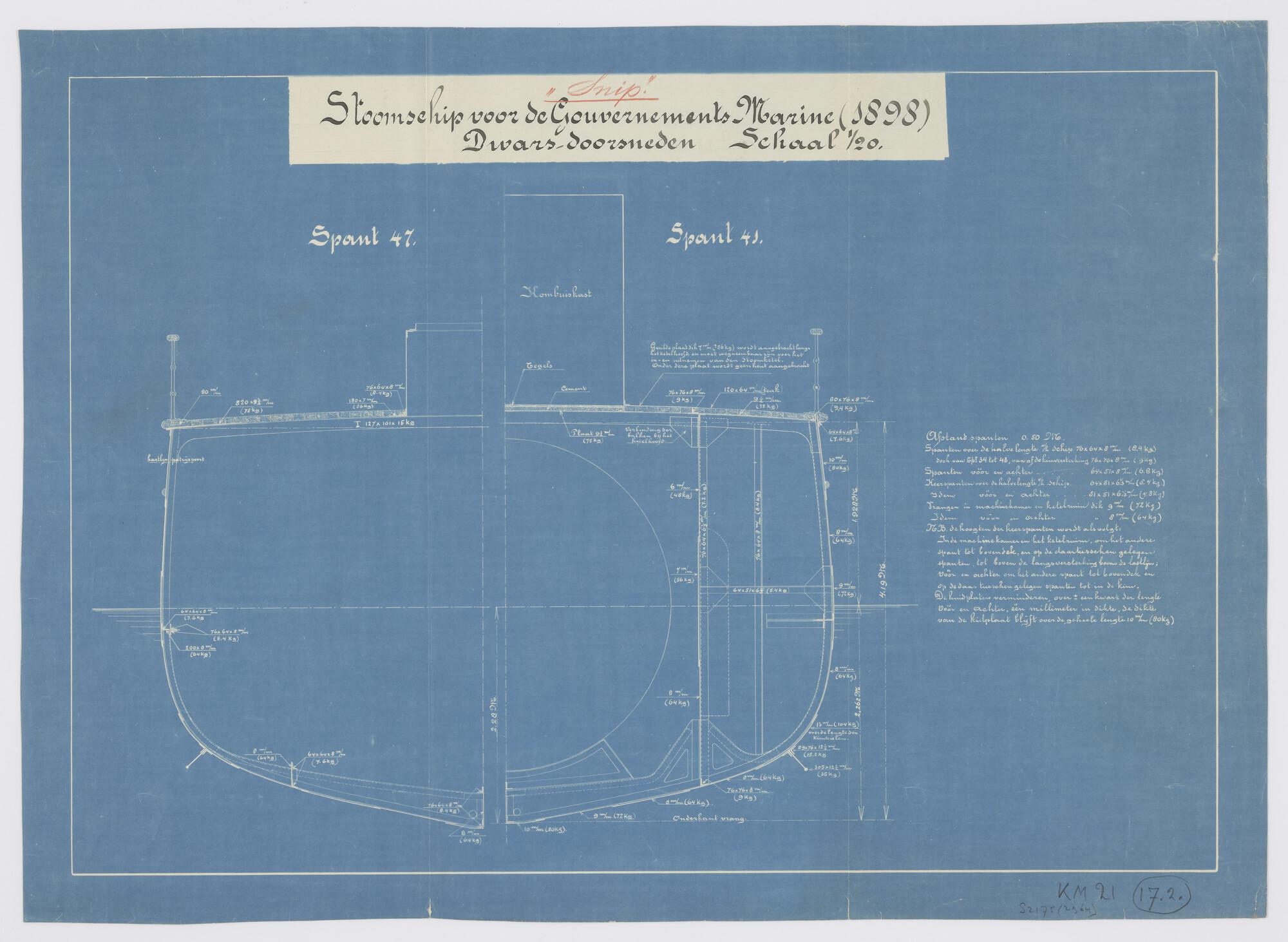 Spantenlijst voor een vrachtschip met petroleummotor