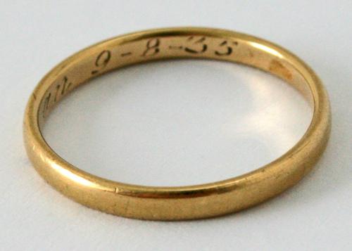 Gouden ring met binnen in: Leida 9-8-‘35, Trouwring ...