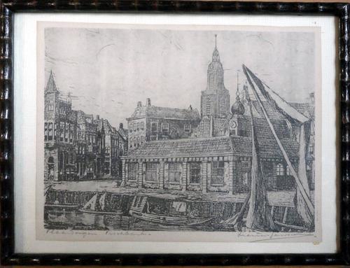 Litho. Smalle Havenstraat met voormalige Stalhouderi...