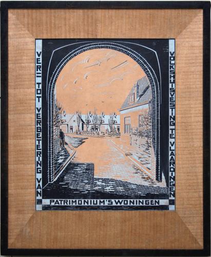Linoleum snede Van Lennepsplaats, Vlaardingen.