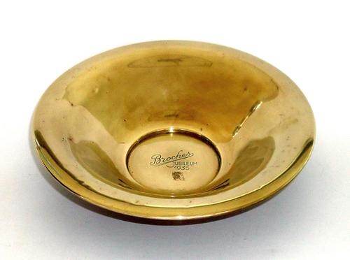 Onderschaal. Koperen schaal met inscriptie BROCHES ...