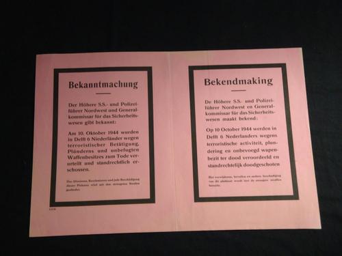 Bekendmaking door de SS zes Nederlanders ter dood ve...